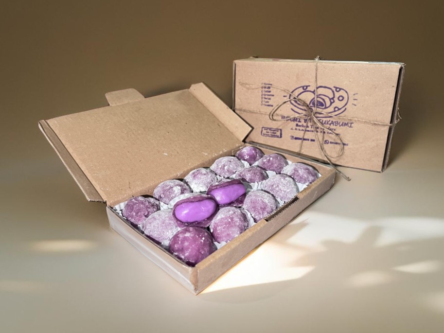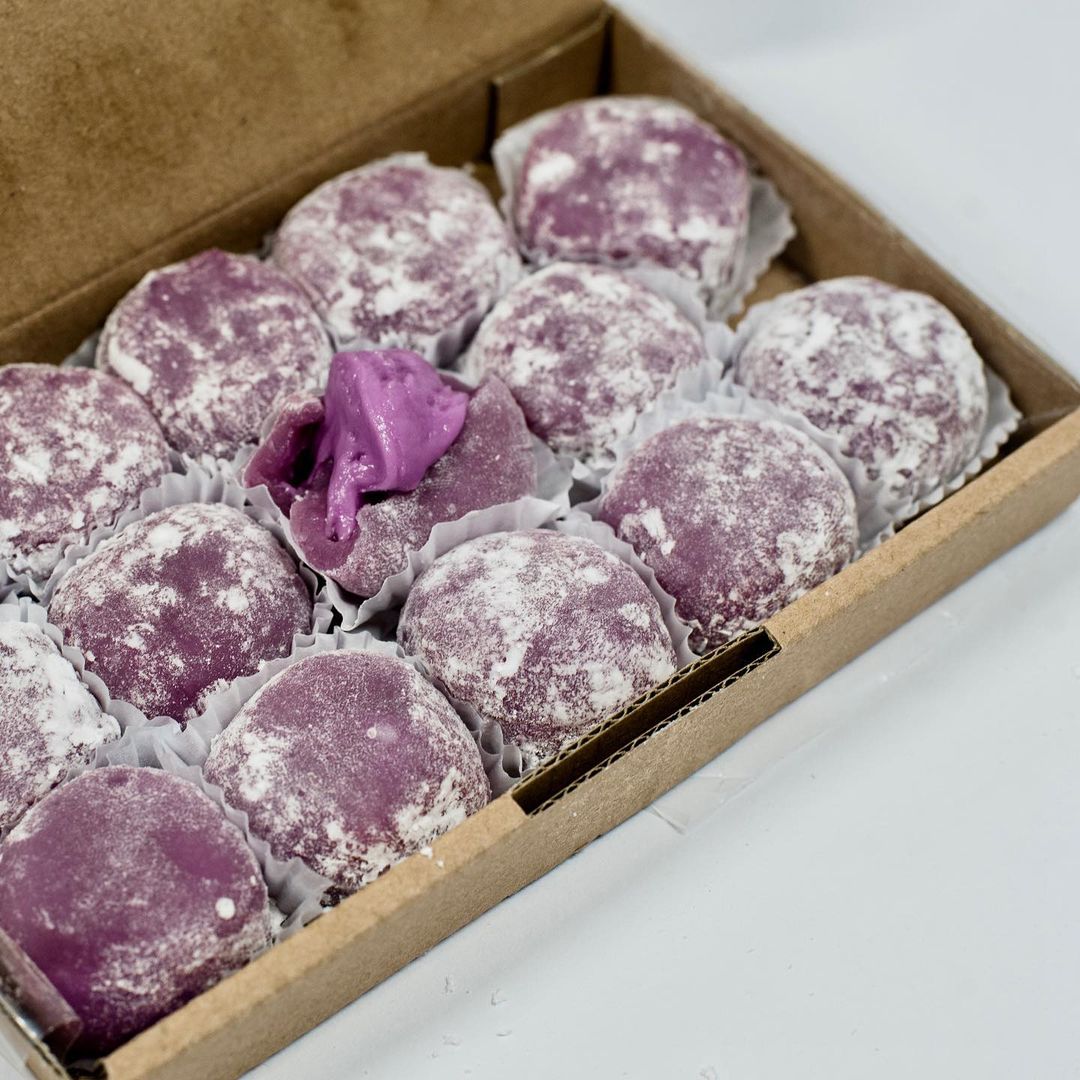 Berisi 15 pcs mochi dengan isian selai talas ungu. Aroma lembut dan rasa manis khas talas ungu menjadikannya pilihan menarik untuk disajikan maupun dinikmati sendiri.